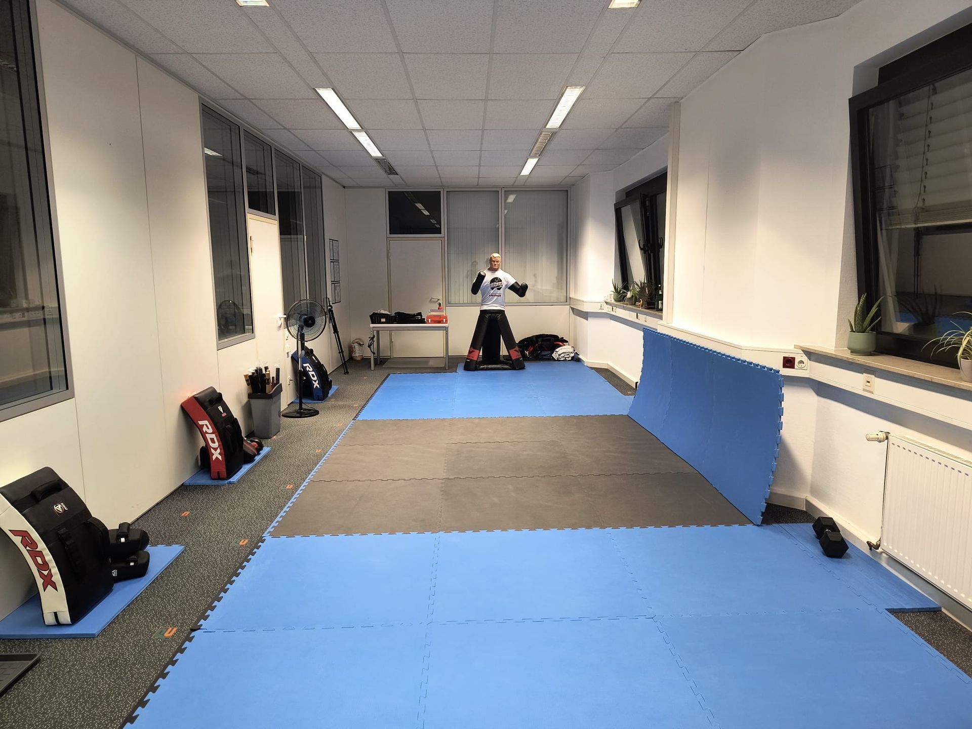 - Mit Kampfsportmatten ausgerüstet, geeignet für Fallschule, Sparring und Wurftechniken.